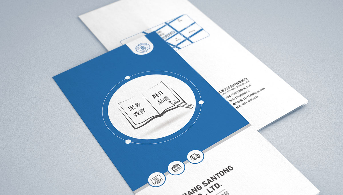 現代標志承載著企業的無形資產,是企業綜合信息傳遞的媒介。一個好的LOGO外形上應該簡單易懂,便于品牌傳播,同時應該承載著品牌深刻的內涵。三通圖書意指早期糧食、供銷、商業三個部門的教材,設計師將三本書以及“書”書繁體字結合,最后加上英文字母縮寫,構成識別度高的品牌LOGO;同時強調了品牌的內涵,突出圖書行業屬性及展現為院校提供圖書教材供應服務的經營項目。