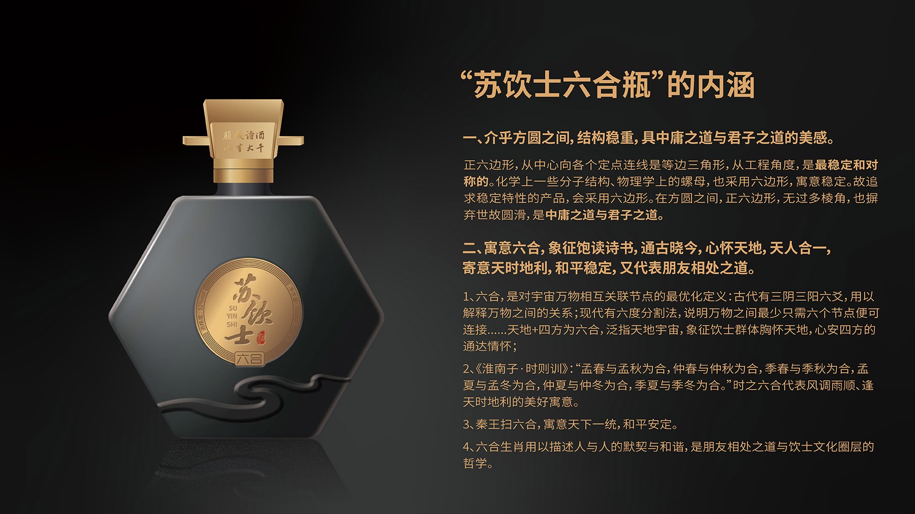 蘇飲士來自中國酒都江蘇宿遷,宿遷有著悠久的釀酒歷史和高超的制酒工藝,早在千年前,蘇軾途徑宿遷就品嘗過當地美酒,并留下詩文大肆贊美,結合蘇酒的地理區隔、蘇軾的歷史典故以及中國白酒文化的精神傳承,蘇飲士的命名由此而來,它代表著純正蘇系蘇軾文化飲士文化的三重屬性。