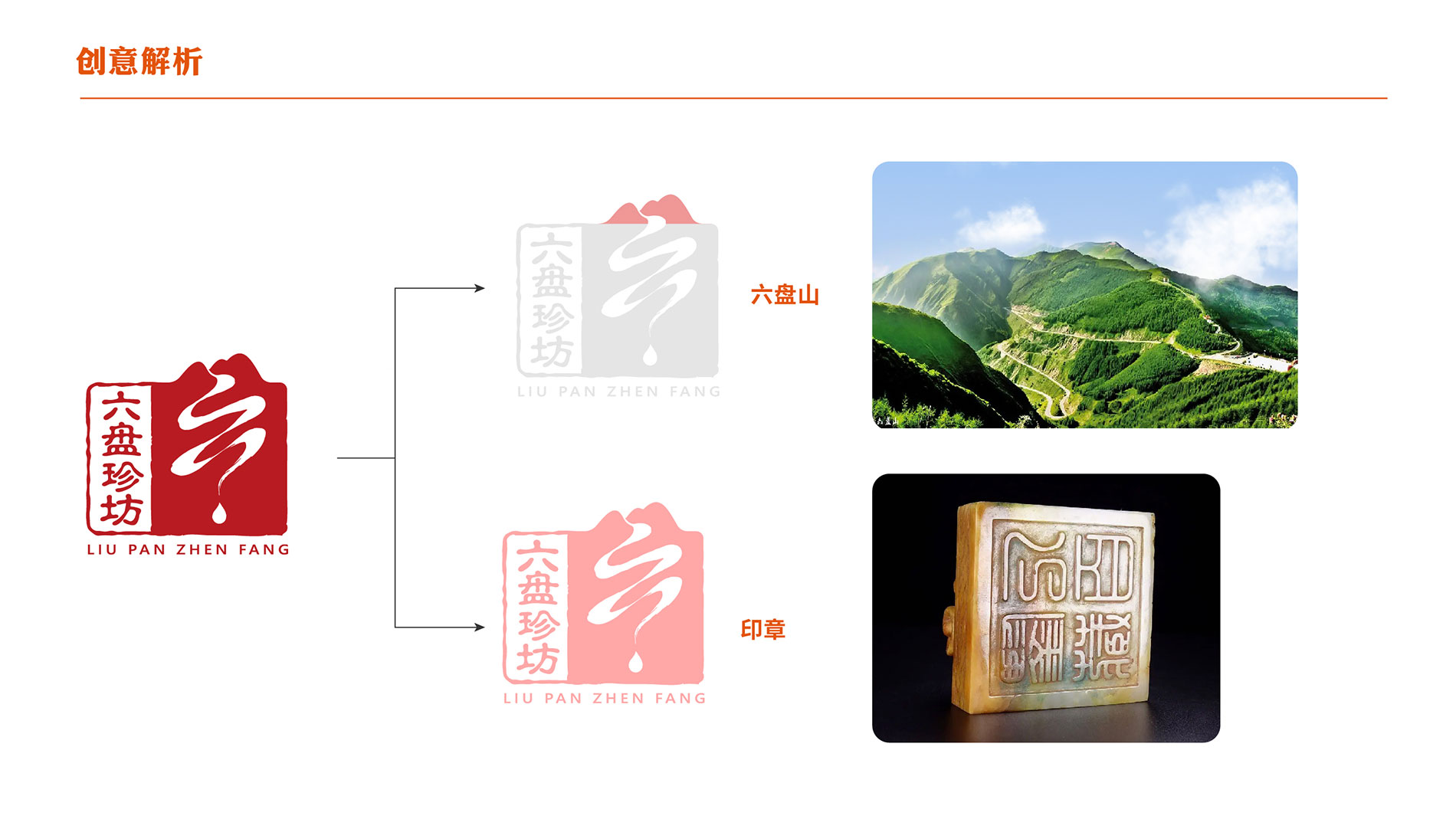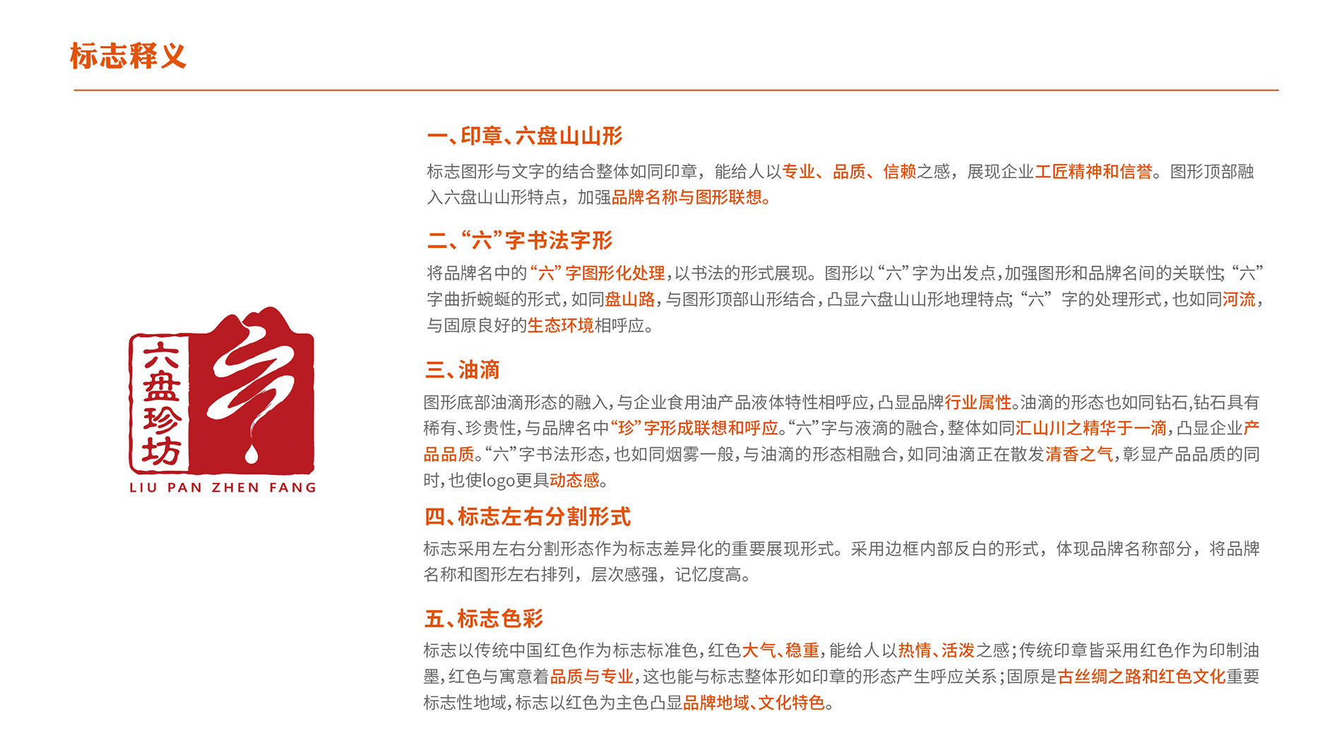二、印章、六盤山山形:標志圖形整體如同印章,能給人以專業、品質之感,展現企業工匠精神。圖形頂部融入六盤山山形特點,加強品牌名稱與圖形聯想。