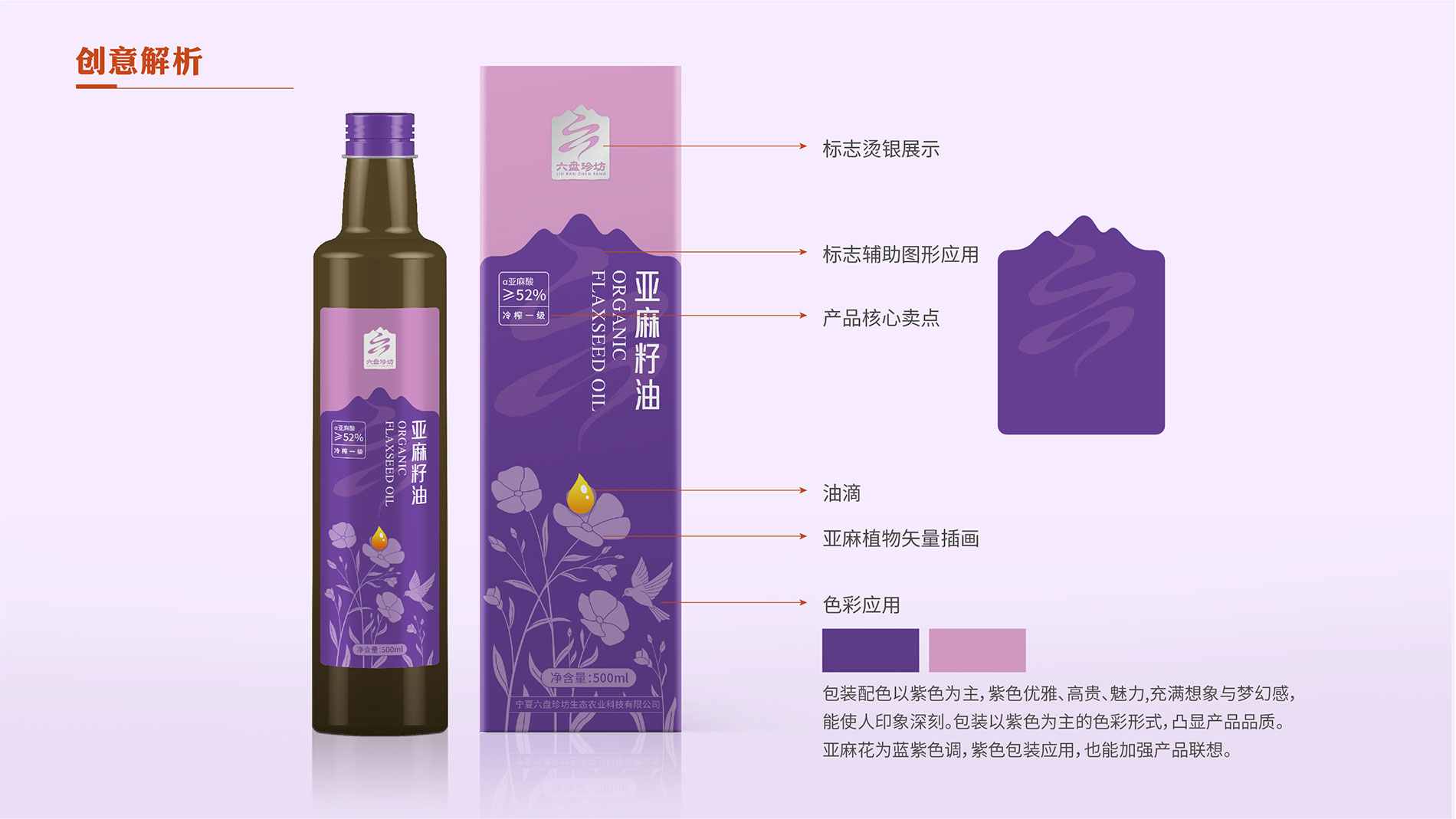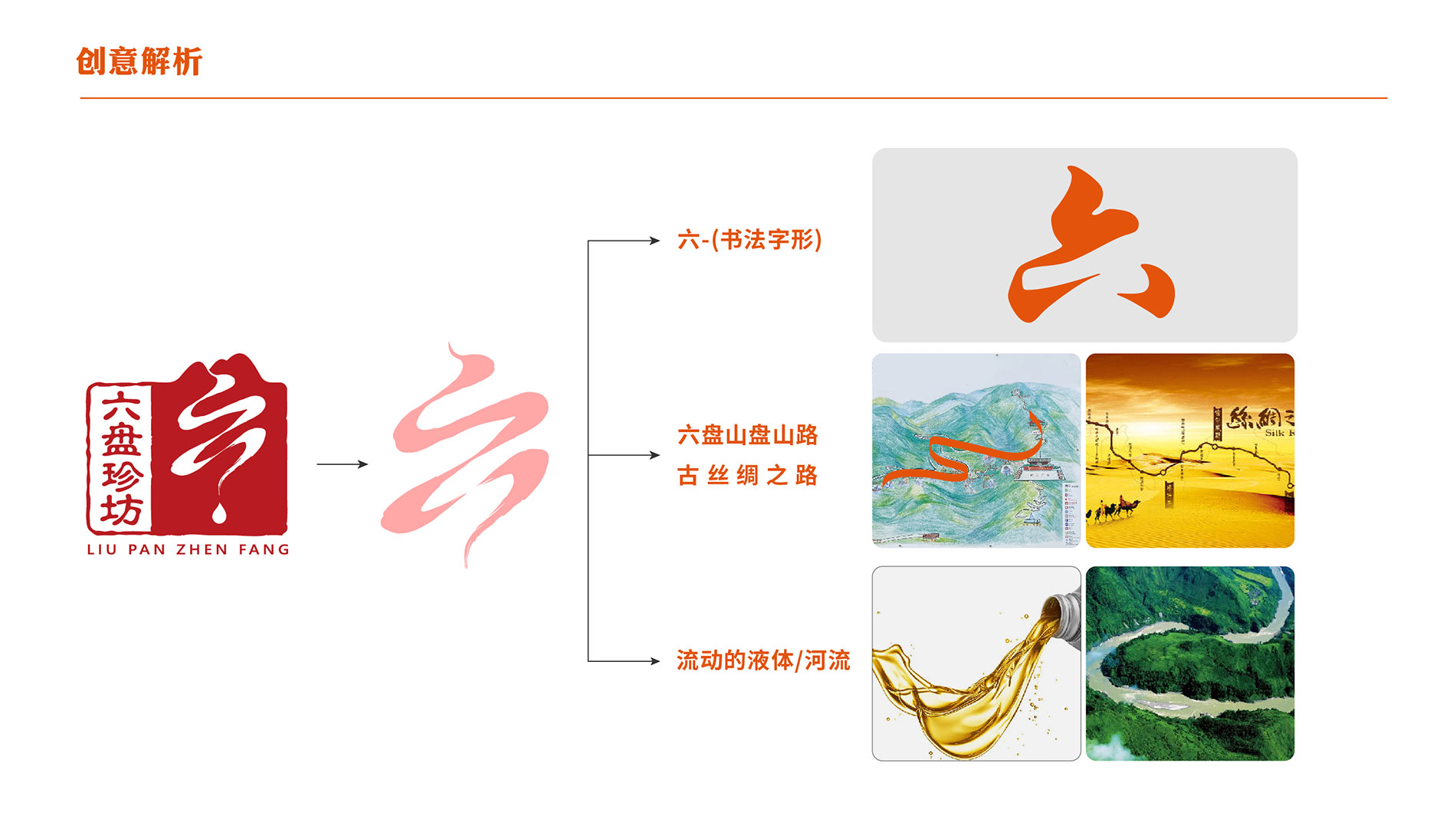 一、“六”字書法字形:將品牌名中的“六”字圖形化處理,以書法的形式展現。圖形以“六”字為出發點,加強圖形和品牌名間的關聯性;“六”字曲折蜿蜒的形式,如同盤山路,與圖形頂部山形結合,凸顯六盤山山形地理特點;“六”字的處理形式,也如同河流,與固原良好的生態環境相呼應。