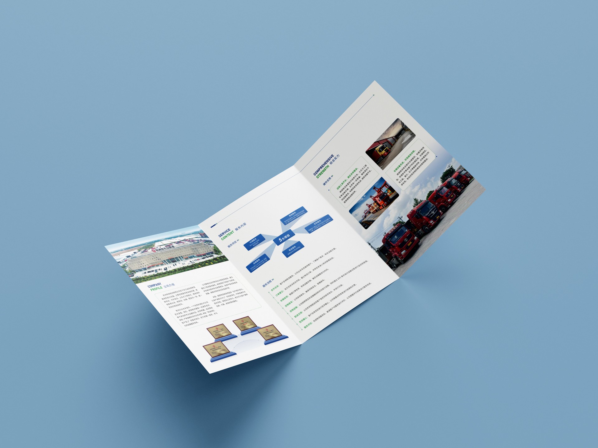 折頁內(nèi)容包括企業(yè)文化、企業(yè)概況、服務項目流程、綜合實力等,展示公司的軟硬件優(yōu)勢,突出公司實力。