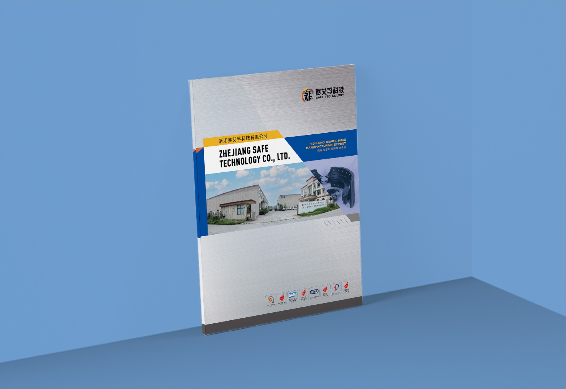 -封面背景色采用銀色,象征科技、高端和未來感,中央位置放置企業(yè)大樓圖片和產(chǎn)品圖片,這兩者相輔相成,共同展示了浙江賽艾孚科技的專業(yè)領(lǐng)域與核心業(yè)務(wù)。
