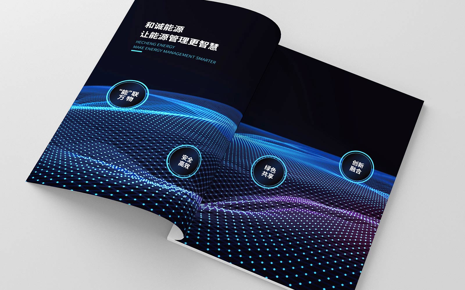 畫冊在設計過程中為實現能源的可視化,進行了2.5D的插畫設計,讓整本畫冊內容美觀、易懂。封面采用了數據化、科技化的設計,貼合企業的行業屬性。