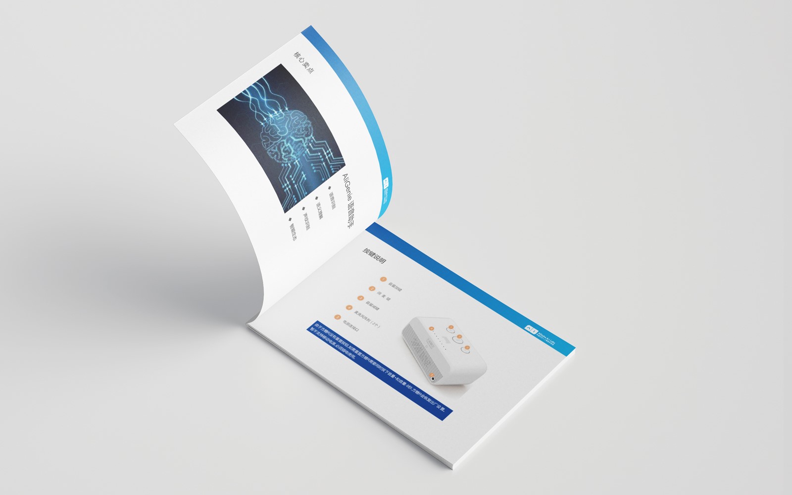作為一款物聯網產品,設計必須有科技感,但是有不能過于花哨。那么宣傳冊設計頁面適當留白是必不可少的,石特廣告經過各種分析,為合計智能設計出了滿意的宣傳冊。