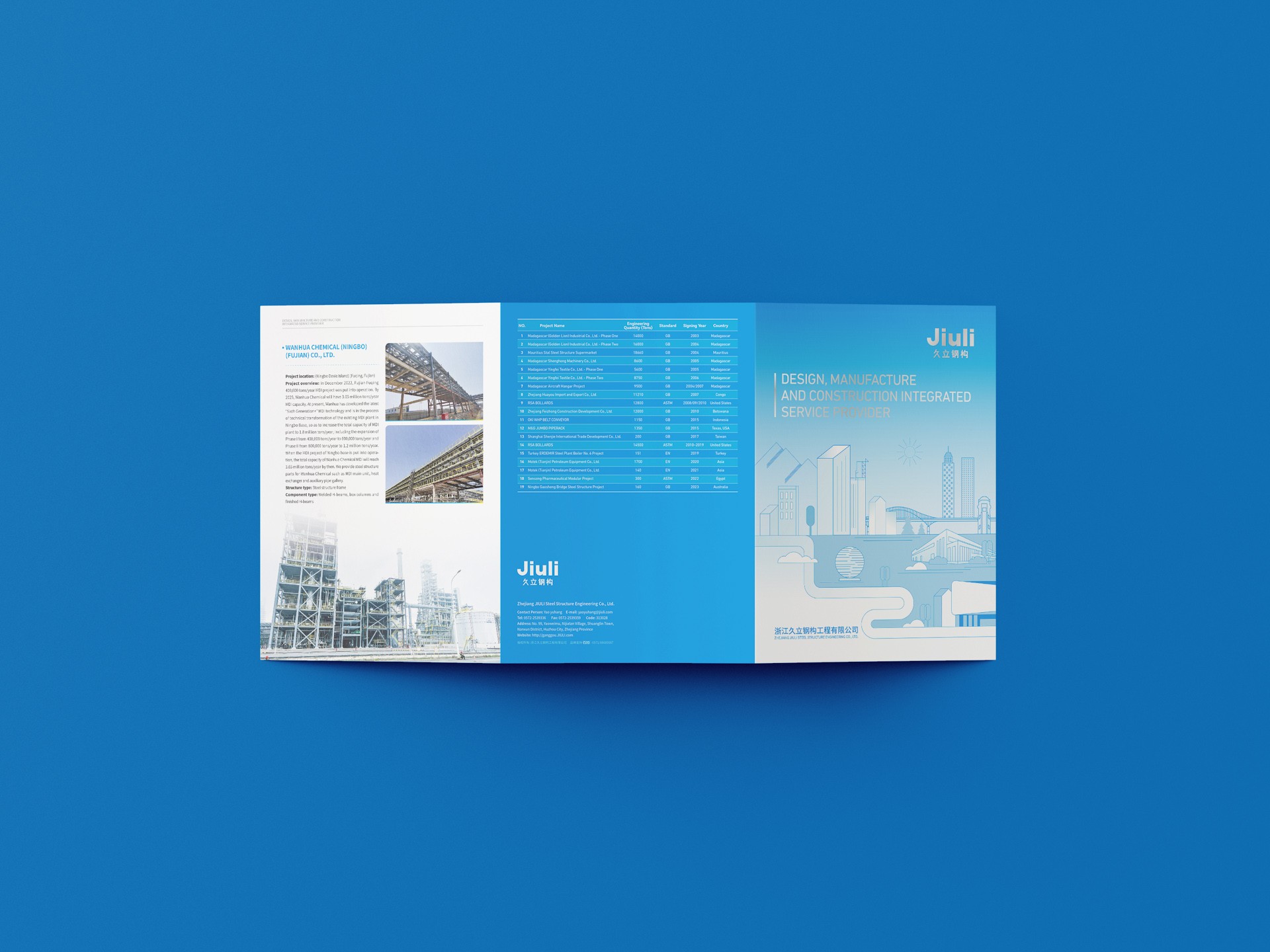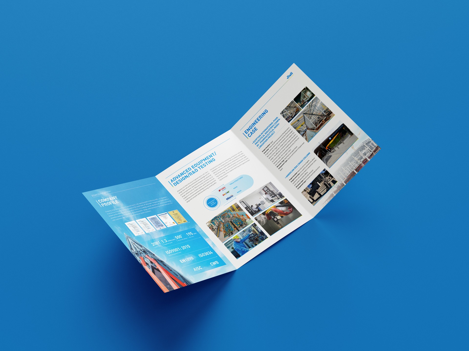 一、設計理念與目標:本次鋼結(jié)構(gòu)公司宣傳三折頁設計,我們秉持專業(yè)、創(chuàng)新和實用的設計理念,旨在通過獨特的視覺呈現(xiàn)和精準的信息傳達,充分展示公司的實力、技術水平和業(yè)務范圍,樹立公司品牌形象,吸引潛在客戶的關注。