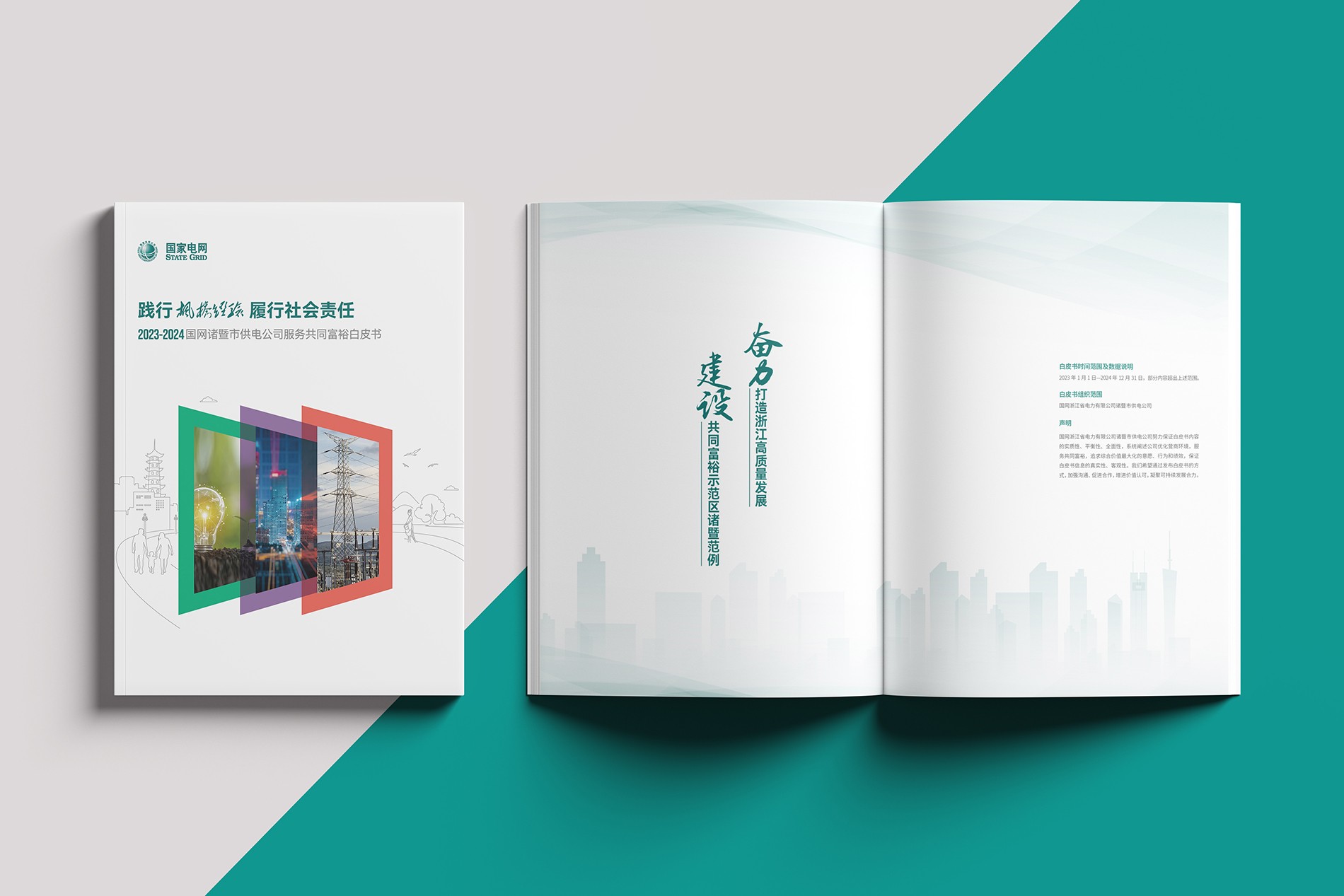創意設計與品牌融合:在設計風格上,以簡潔大氣為主,采用國網諸暨市供電公司的品牌主色調,并融入象征共同富裕、繁榮發展的元素,如象征協作的握手圖案抽象變形、代表發展活力的靈動線條等,將品牌形象與主題深度融合。運用高質量的圖片、圖表以及簡潔的文案說明,對專業數據和業務內容進行可視化處理,增強白皮書的可讀性與視覺吸引力。