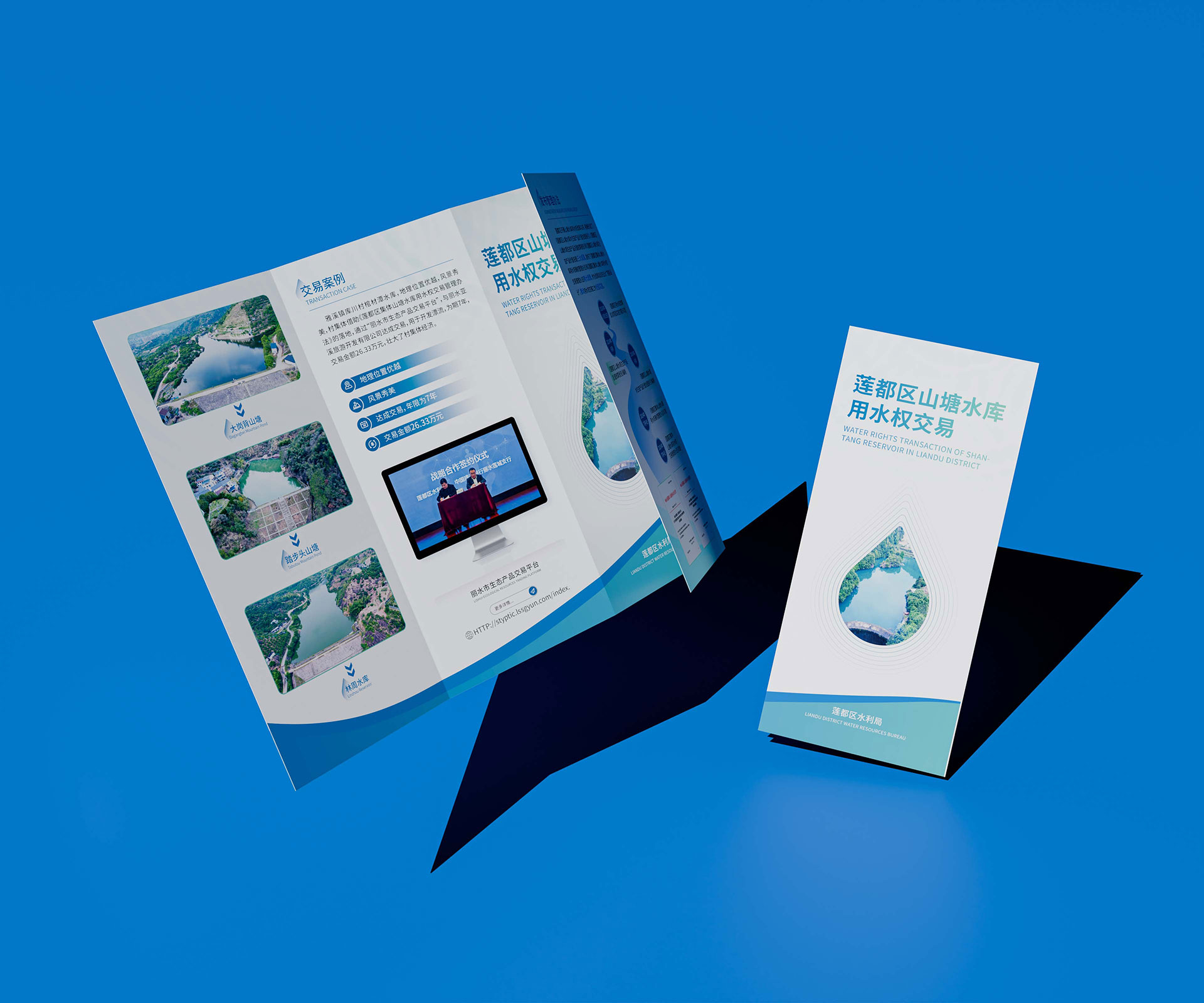 本四折頁設計作為生態產品交易的首張水利工程名片,助力庫坑山塘項目在麗水生態產品交易平臺獲得超1000次瀏覽,吸引15家機構參與競價。其創新價值體現在三方面:
