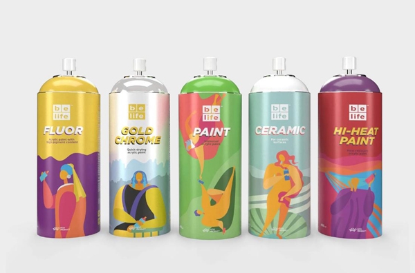 噴漆包裝具有強的視覺沖擊力和趣味性,成功的利用人們對名畫的熟悉感,消除了消費者對一個沒有使用過的產(chǎn)品的陌生感,借助每件名畫充滿個性又易于識別、易于被世界各地的人們接受和喜愛的優(yōu)勢,從而加深了這款噴漆產(chǎn)品對于消費者的記憶。