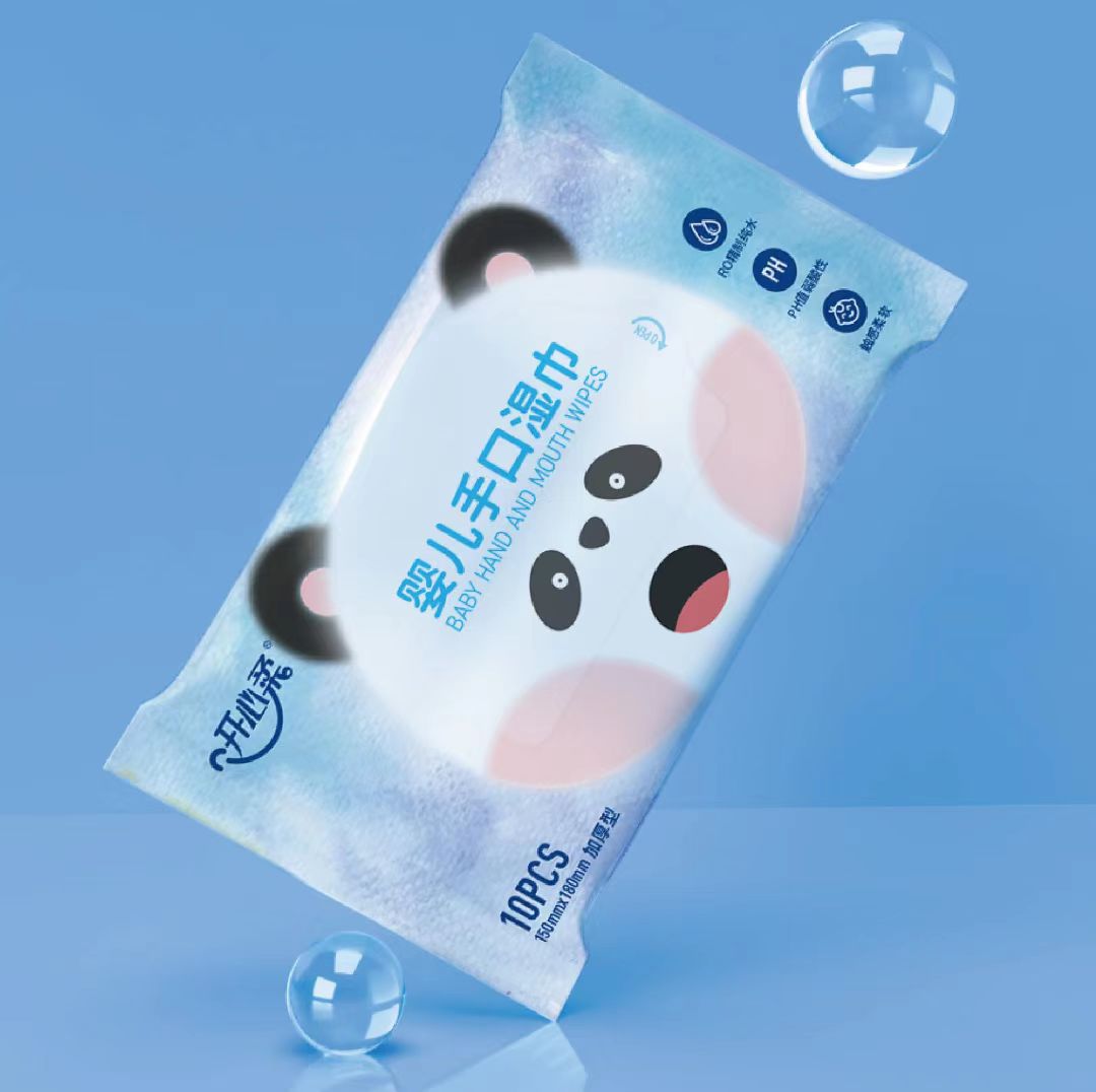 與一般嬰兒濕布相比,嬰兒手口濕巾殺菌和消毒作用更強,手口濕巾受到廣大消費者的歡迎,開心柔嬰兒手口濕巾采用新型技術,觸感柔軟舒適,PH值更貼近嬌嫩肌膚,為了能夠拉近與消費者的距離,擴大產品銷量,增強品牌影響力,石特受委托為嬰兒手口濕巾設計包裝。