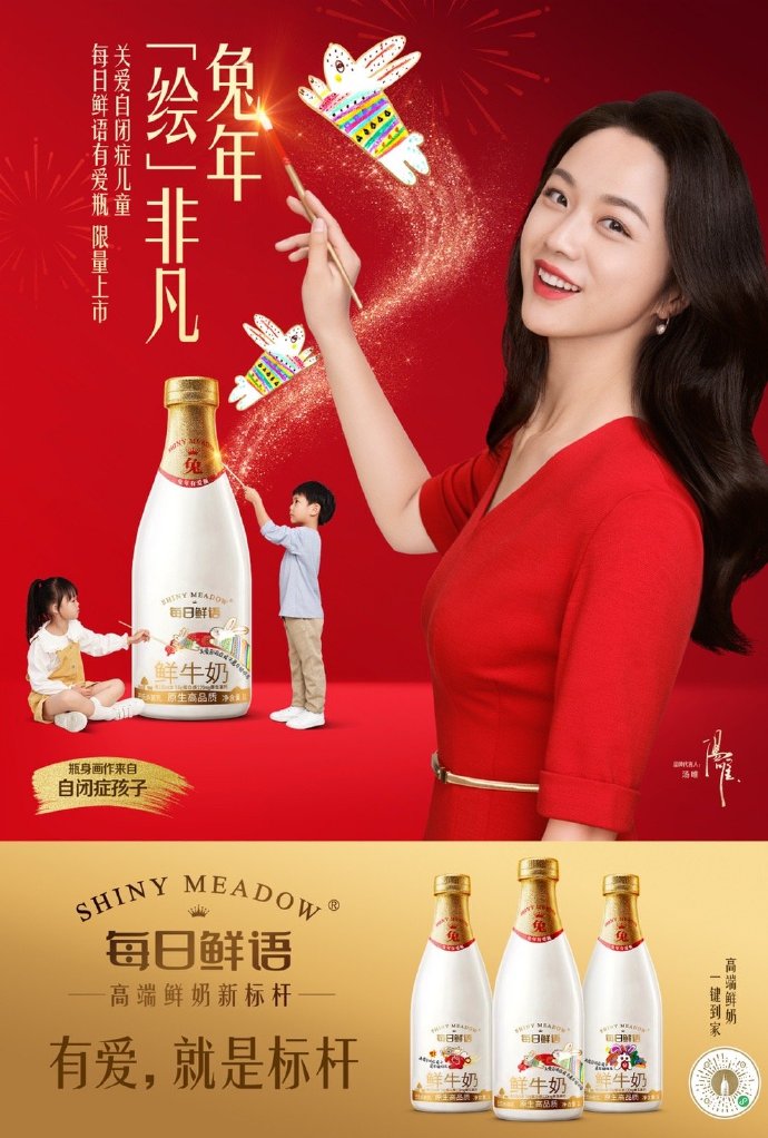 每日鮮語(yǔ)的議題很明顯——選擇公益行動(dòng),在這場(chǎng)自閉癥孩童關(guān)愛(ài)行動(dòng)中,每日鮮語(yǔ)將產(chǎn)品、創(chuàng)意融入其中,向公眾推出“兔年有愛(ài)瓶”,有愛(ài)的不僅是瓶身的畫(huà)作創(chuàng)意、還有展現(xiàn)出來(lái)的品牌的價(jià)值觀,“積極有愛(ài)”的形象與每日鮮語(yǔ)綁定。