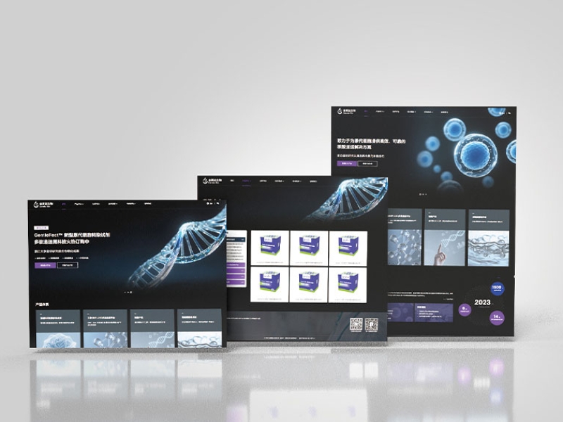 專業(yè)大氣的視覺體系:網(wǎng)站主視覺采用科技藍與生命綠相結(jié)合的配色方案,象征著金簡達生物在嚴(yán)謹(jǐn)科技中對生命科學(xué)的探索。整體布局簡潔大氣,輔以專業(yè)的圖表與高質(zhì)量影像,精準(zhǔn)傳遞出企業(yè)的科技感與專業(yè)度。