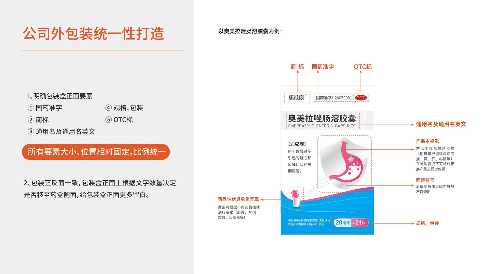 產(chǎn)品外包裝設(shè)計(jì)打造的方向和目標(biāo):1、增強(qiáng)統(tǒng)一性,外包裝版型統(tǒng)一,各要素統(tǒng)一,大小、比例、位置相對固定;2、提高辨識度,外包裝醒目易辨,充分體現(xiàn)產(chǎn)品家族式管理,提高不同企業(yè)之間的辨識度、公司產(chǎn)品之間的辨識度、同一產(chǎn)品不同規(guī)格之間的辨識度3、增強(qiáng)美觀度,版面簡潔美觀,各要素大小、比例、位置設(shè)置合理,圖形、色塊和色彩搭配協(xié)調(diào)。