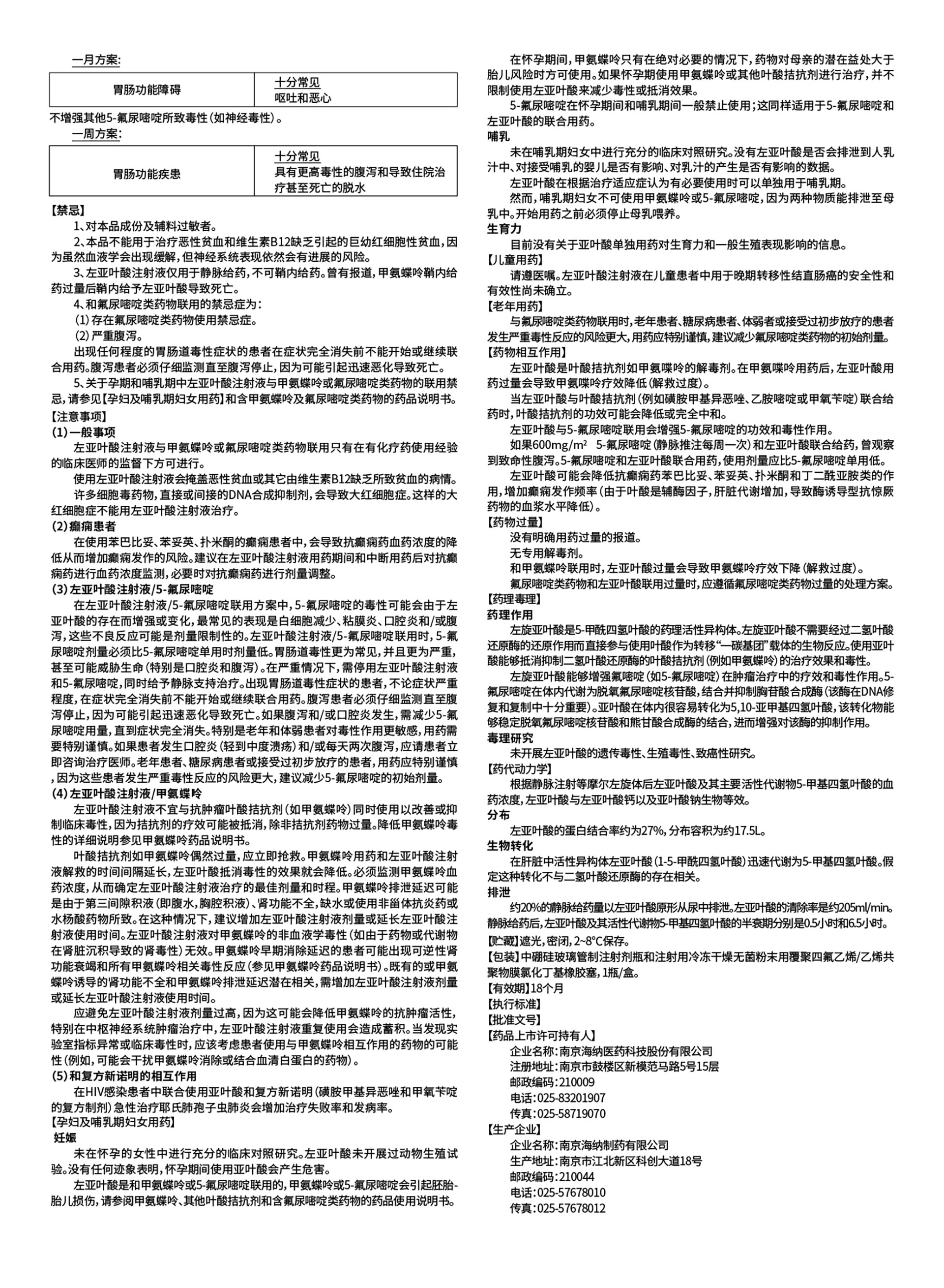 3、與5-氟尿密呢聯(lián)用,治療轉(zhuǎn)移性結(jié)直腸癌。使用限制:本品不能用于治療惡性貧血和維生素B,,缺乏引起的巨幼紅細(xì)胞性貧血因為雖然血液學(xué)會出現(xiàn)緩解,但神經(jīng)系統(tǒng)表現(xiàn)依然會有進展的風(fēng)險。