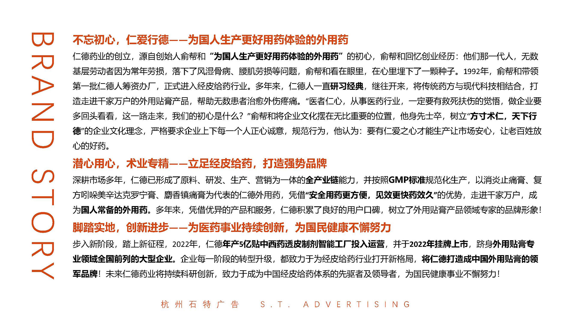 仁德藥業(yè)一直以經(jīng)皮給藥立足,是杭州乃至全國較大規(guī)模的外用透皮貼劑企業(yè),企業(yè)成立三十年之際,仁德開工建設(shè)年產(chǎn)5億貼中西藥透皮制劑智能工廠并籌備上市。在大力推動市場布局的同時,原有的品牌定位不精準(zhǔn);品牌理念與價值不成體系;品牌形象陳舊、不規(guī)范;產(chǎn)品系列待規(guī)劃,包裝形態(tài)落后,亟待自上而下為品牌打好根基,提高產(chǎn)品市場行銷力。