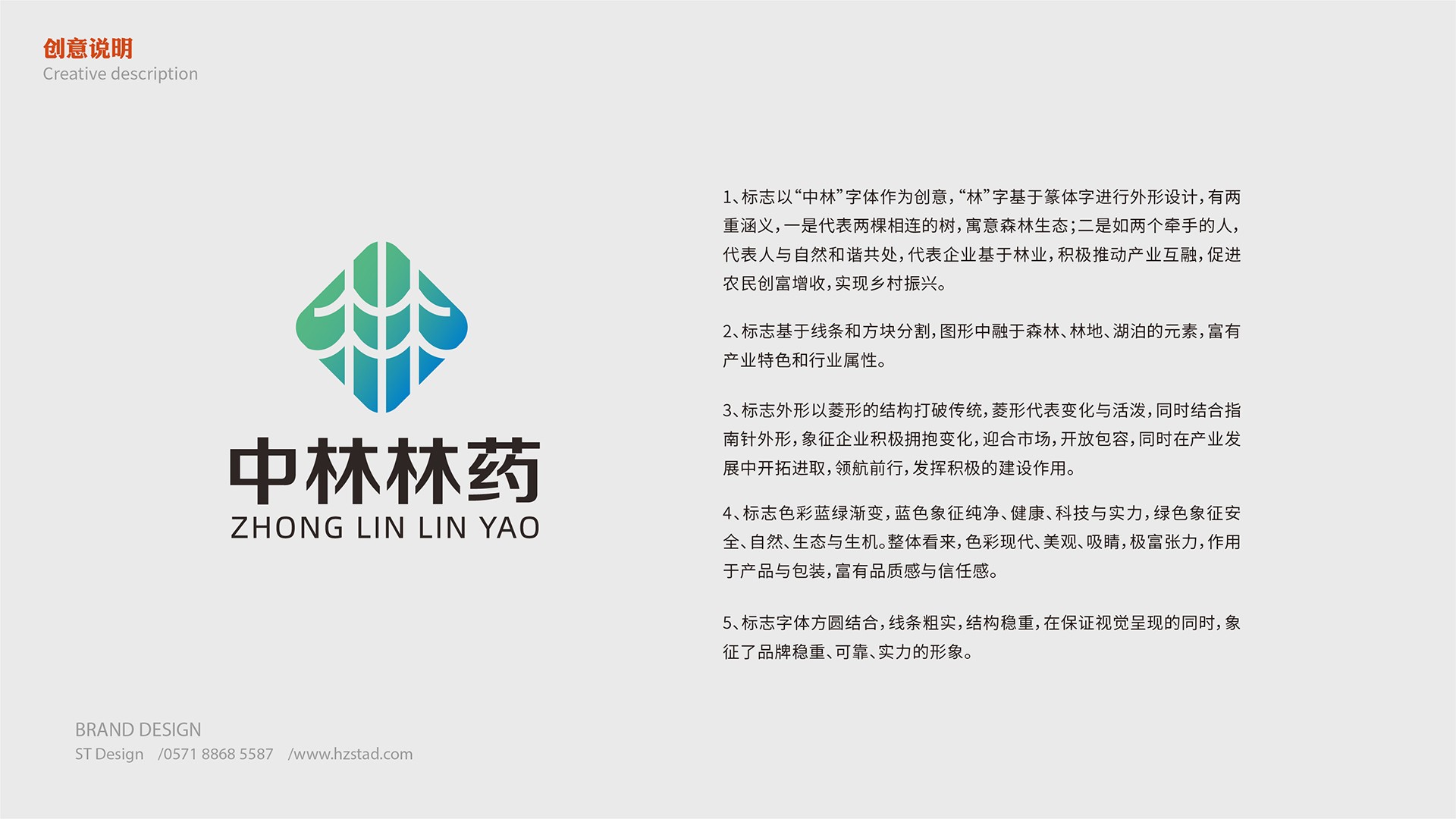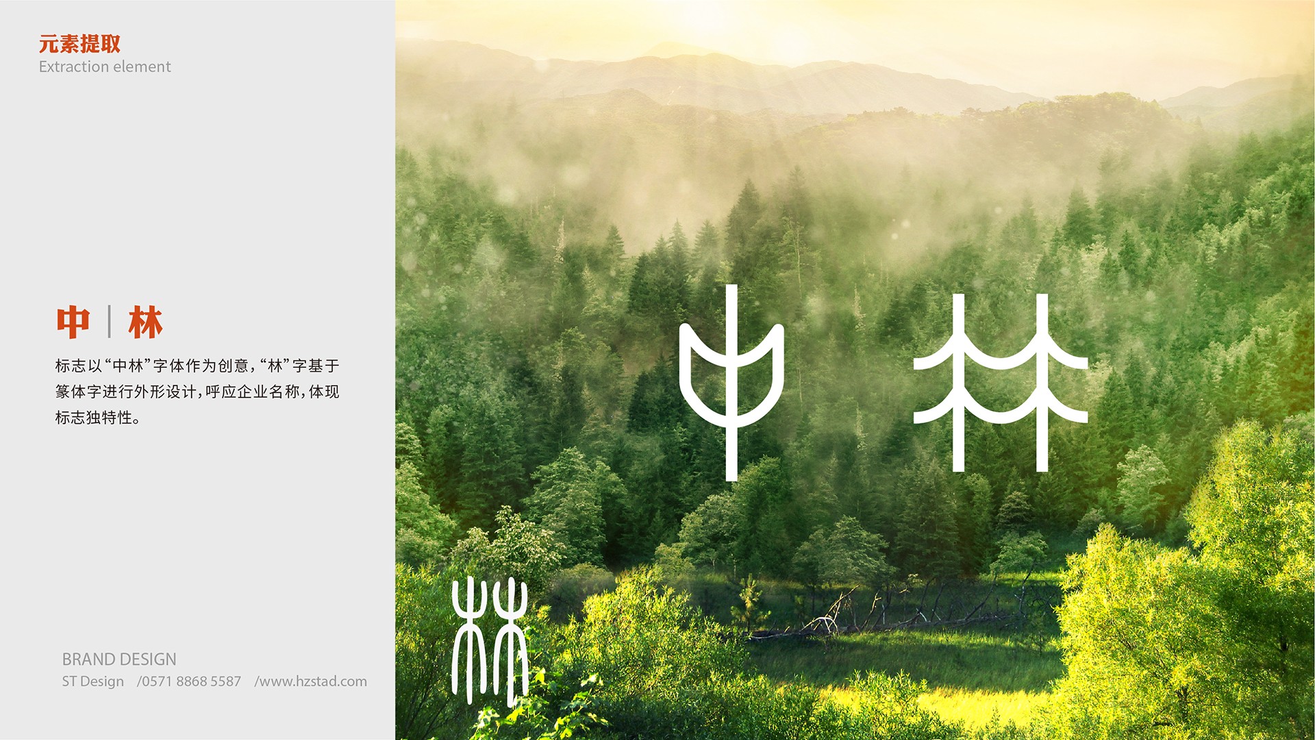 標志以“中林”字體作為創(chuàng)意,林字基于篆體字進行外形設計,有兩重涵義,一是代表兩棵相連的樹,寓意森林生態(tài);二是如兩個牽手的人,代表人與自然和諧共處,代表企業(yè)基于林業(yè),積極推動產業(yè)互融,促進家民創(chuàng)富增收,實現(xiàn)鄉(xiāng)村振興。