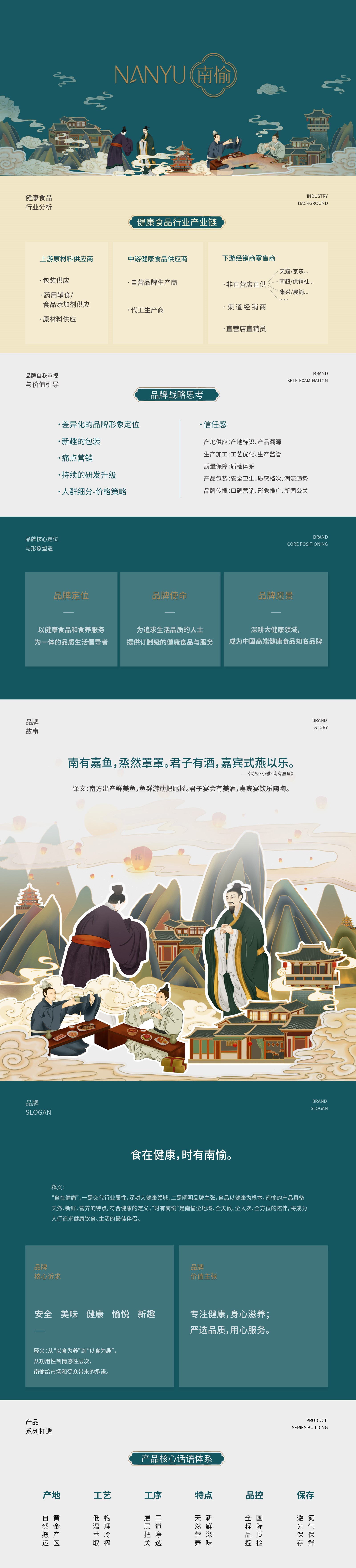 品牌是利潤工具,產(chǎn)品是第一品牌力。基于此,石特對南愉的市場力、品牌力、產(chǎn)品力等情況進(jìn)行全方面的分析與洞察,結(jié)合南愉品牌獨有的特點,精心為南愉的品牌市場化道路提出合理化建議。石特將南愉定位為“以健康食品和食養(yǎng)服務(wù)為一體的品質(zhì)生活倡導(dǎo)者”的品牌,將“食在健康,時有南愉。”作為南愉品牌的SLOGAN,利用簡短有力的文字傳達(dá)南愉品牌調(diào)性。在logo設(shè)計上,將品牌名和“中國結(jié)、中式鏤空花窗及樹葉”這些極具代表中國的古典元素巧妙結(jié)合,利用中式古典的風(fēng)格進(jìn)行視覺呈現(xiàn)。在包裝設(shè)計上,注入”仁、禮、義、勇、敬”的中國傳統(tǒng)文化,結(jié)合產(chǎn)品特性,尋找到高度的契合點,以原創(chuàng)手繪插畫的創(chuàng)意表現(xiàn)形式,將文字、畫面、故事等融入產(chǎn)品包裝設(shè)計中,充分為南愉賦予豐富的文化內(nèi)涵。無論是從策劃還是到視覺呈現(xiàn)效果上,我們注重突顯出南愉的文化內(nèi)涵與品牌價值,進(jìn)而提升品牌的附加值。本次石特為南愉品牌全案的成功策劃,得到了客戶的高度認(rèn)可。