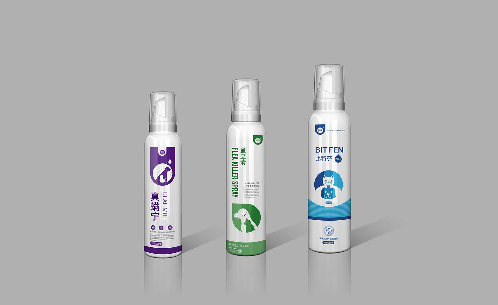 寵物抗菌消毒液噴霧、皮膚護理用品,寵物藥品系列包裝設計