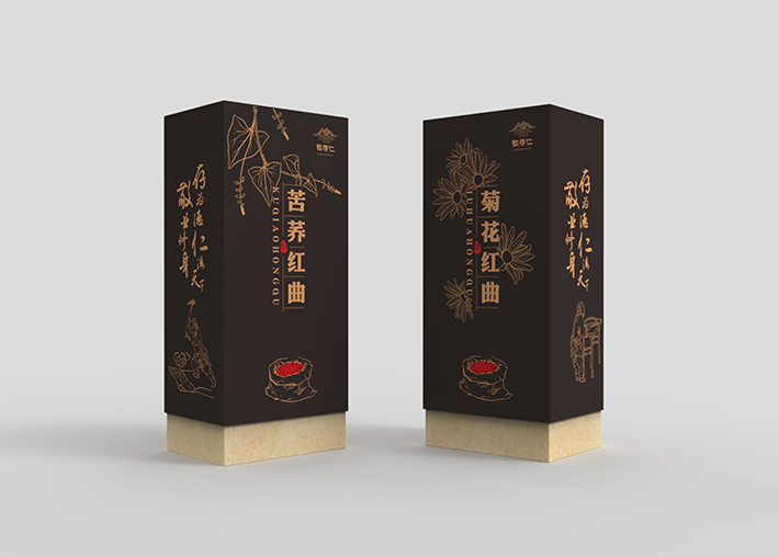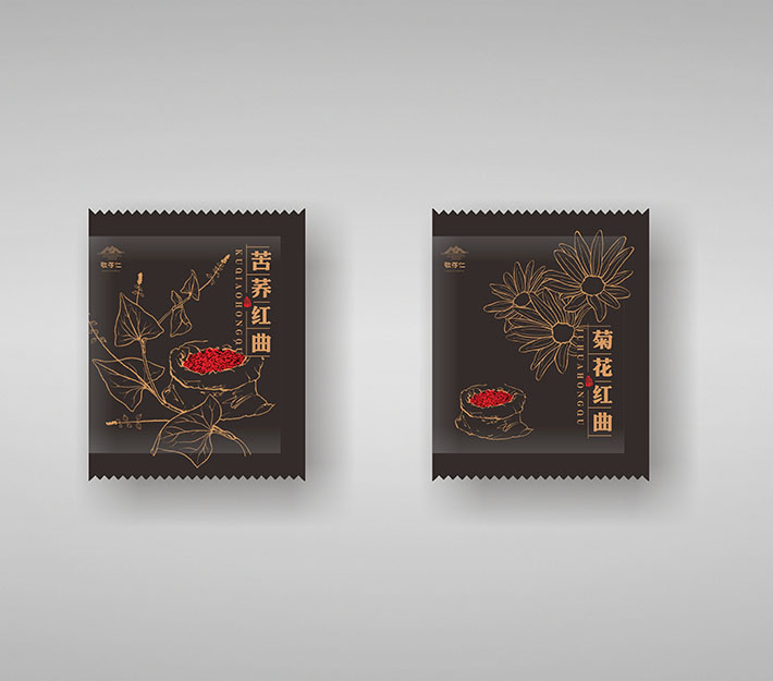 紅曲系列是敬存仁生產(chǎn)產(chǎn)品中的一個系列,它有苦蕎紅曲和菊花紅曲,石特為它做了全面的包裝策劃。這個系列產(chǎn)品仍然延續(xù)其它系列產(chǎn)品風(fēng)格采用全原創(chuàng)手繪設(shè)計,該系列下兩款產(chǎn)品整體風(fēng)格相同,不同產(chǎn)品名字手繪不同植物的形狀加以區(qū)分,這樣整體顯得統(tǒng)一而又便于區(qū)分。