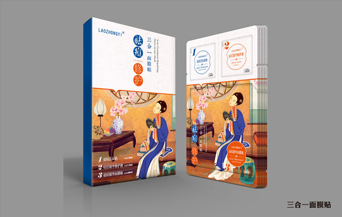 祛痘兩個字放的位置比較明顯,這樣既闡述了產(chǎn)品的功能又很快的吸引了顧客的眼球,旁邊加以小子輔助說明了產(chǎn)品的具體特性,將祛痘的功能表現(xiàn)了出來。愛美之心人皆有之,包裝盒上是一個古代女子坐在閨房內(nèi)照鏡子,給人一種古典美。宮廷多秘方,以古代美人為畫面可以使人聯(lián)想更多。祛痘洗面奶、祛痘修護液、祛痘修護霜瓶子材料包裝設計上采用瓷感白,給人一種白凈清爽的感覺仿佛如美人的臉一樣白皙干凈,同時瓶子設計的很精致給人一種高貴典雅的美感。