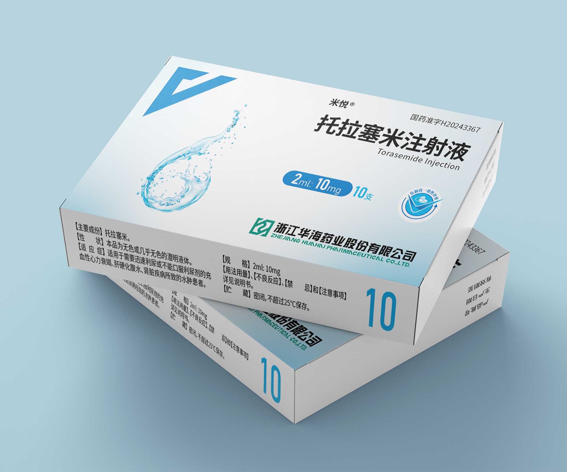 華海制藥作為國內外知名的制藥企業,其托拉塞米產品(包括片劑和注射液)在利尿劑市場上占據重要地位。托拉塞米主要用于治療需要迅速利尿或不能口服利尿劑的充血性心力衰竭、肝硬化腹水、腎臟疾病所致的水腫患者。本案例將針對華海托拉塞米片及注射液的包裝設計進行深入解析。