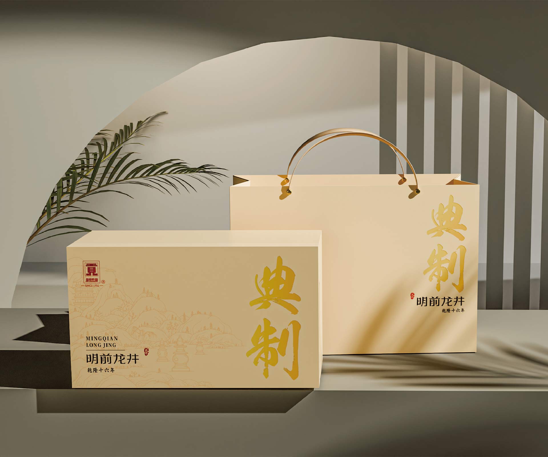 本款“典制系列西湖龍井茶明前龍井禮盒包裝”設(shè)計(jì)案例,旨在通過精致、傳統(tǒng)的包裝形式,展現(xiàn)西湖龍井茶的獨(dú)特韻味與高端品質(zhì)。設(shè)計(jì)靈感來源于中國(guó)傳統(tǒng)茶文化,結(jié)合現(xiàn)代審美趨勢(shì),力求打造一款既符合傳統(tǒng)審美又具現(xiàn)代感的禮盒包裝。