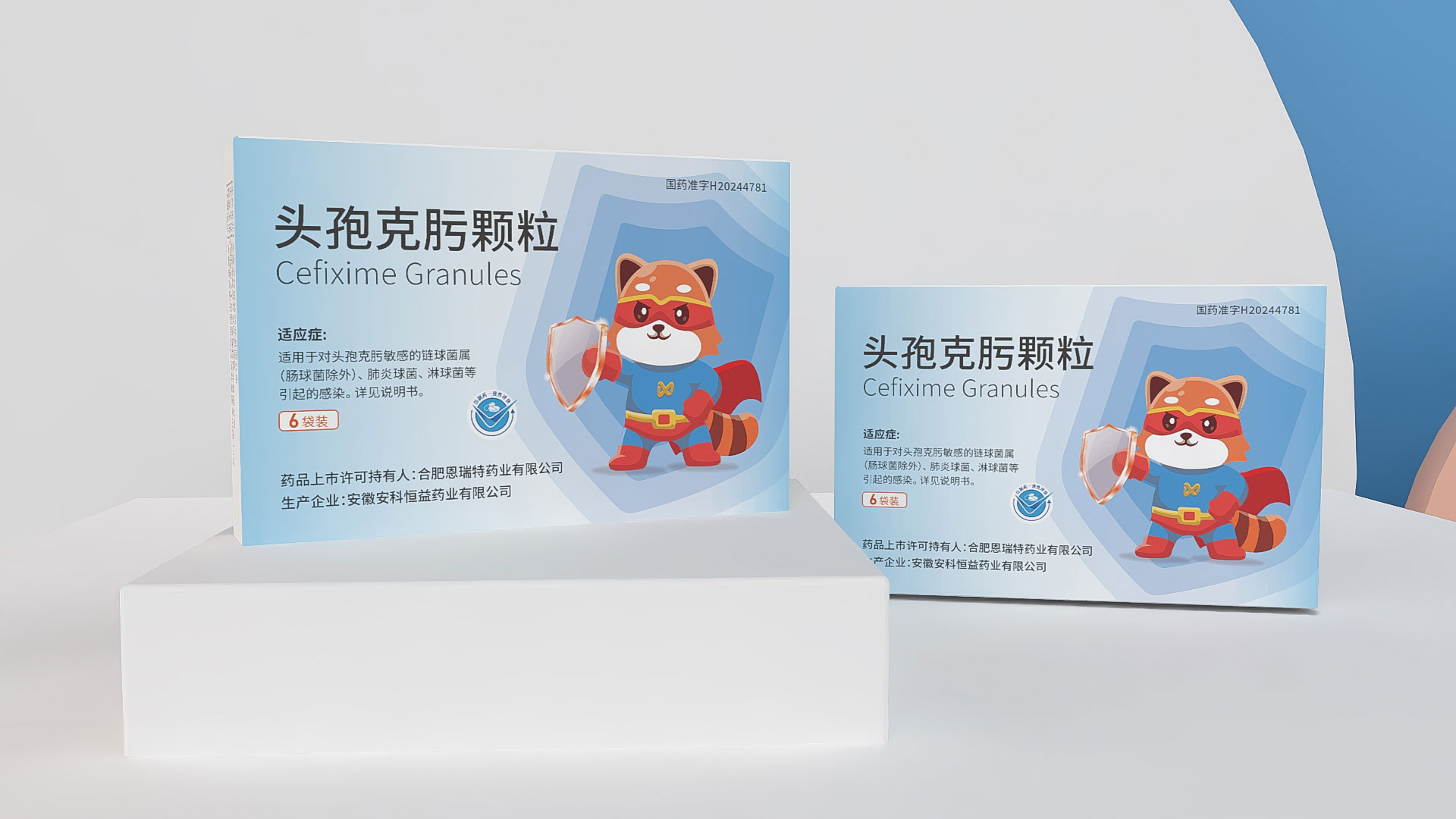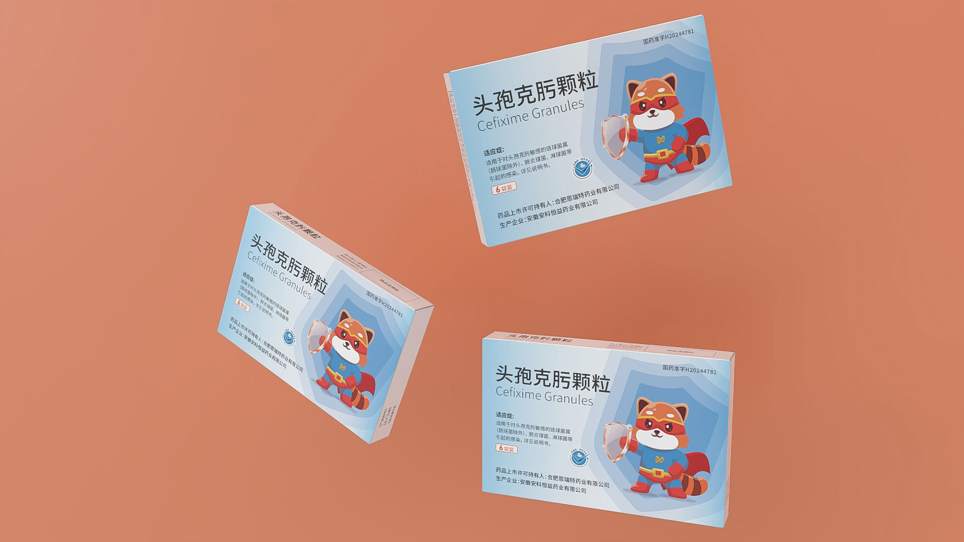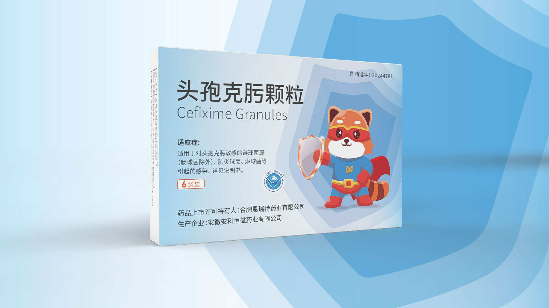 合肥恩瑞特藥業頭孢克肟顆粒兒童用藥包裝設計