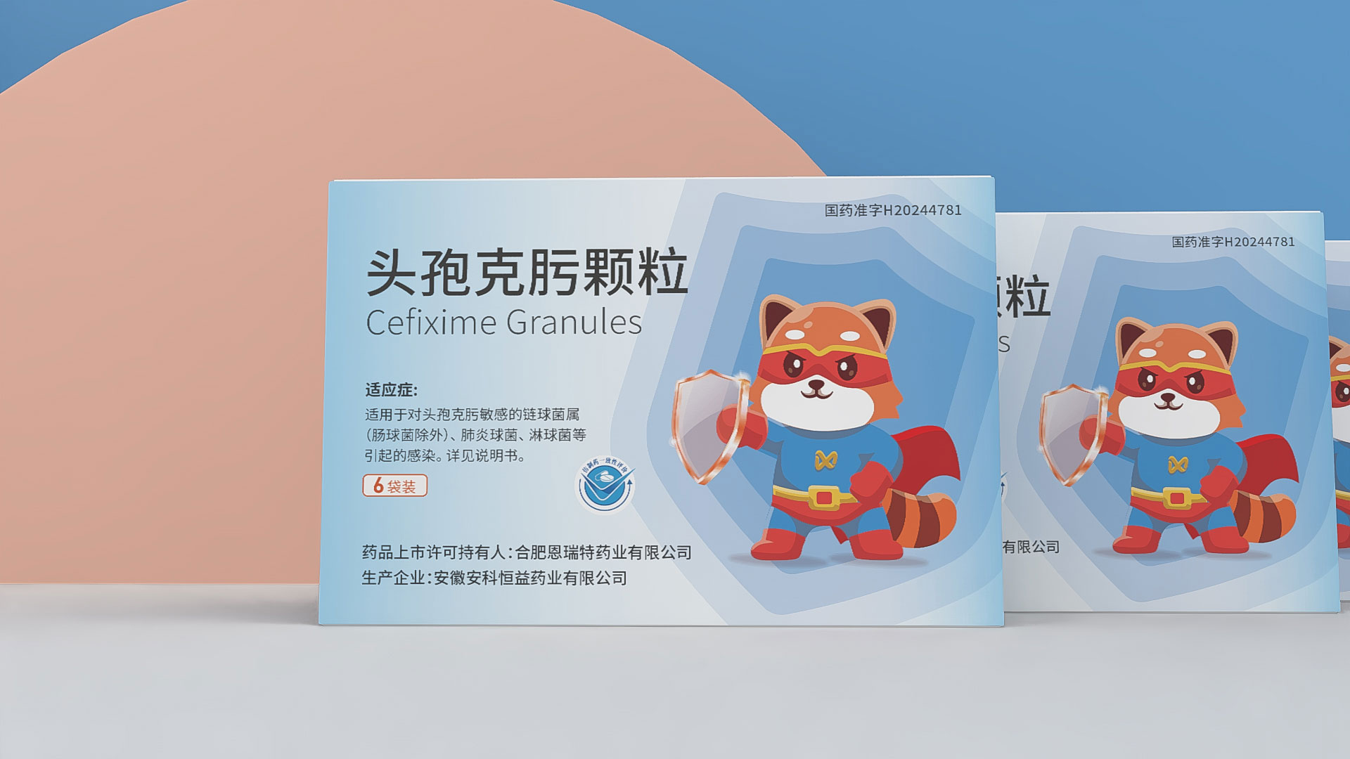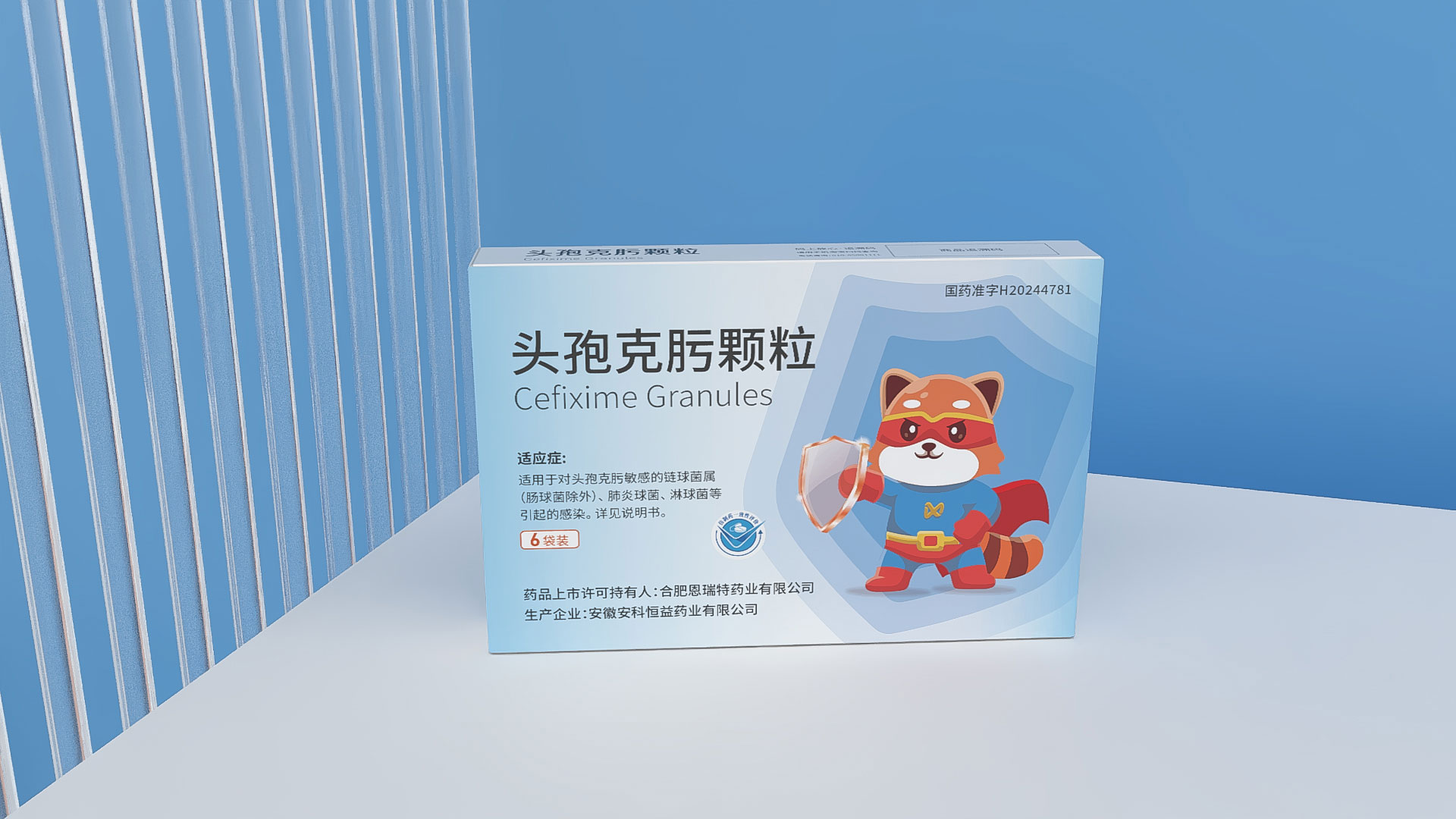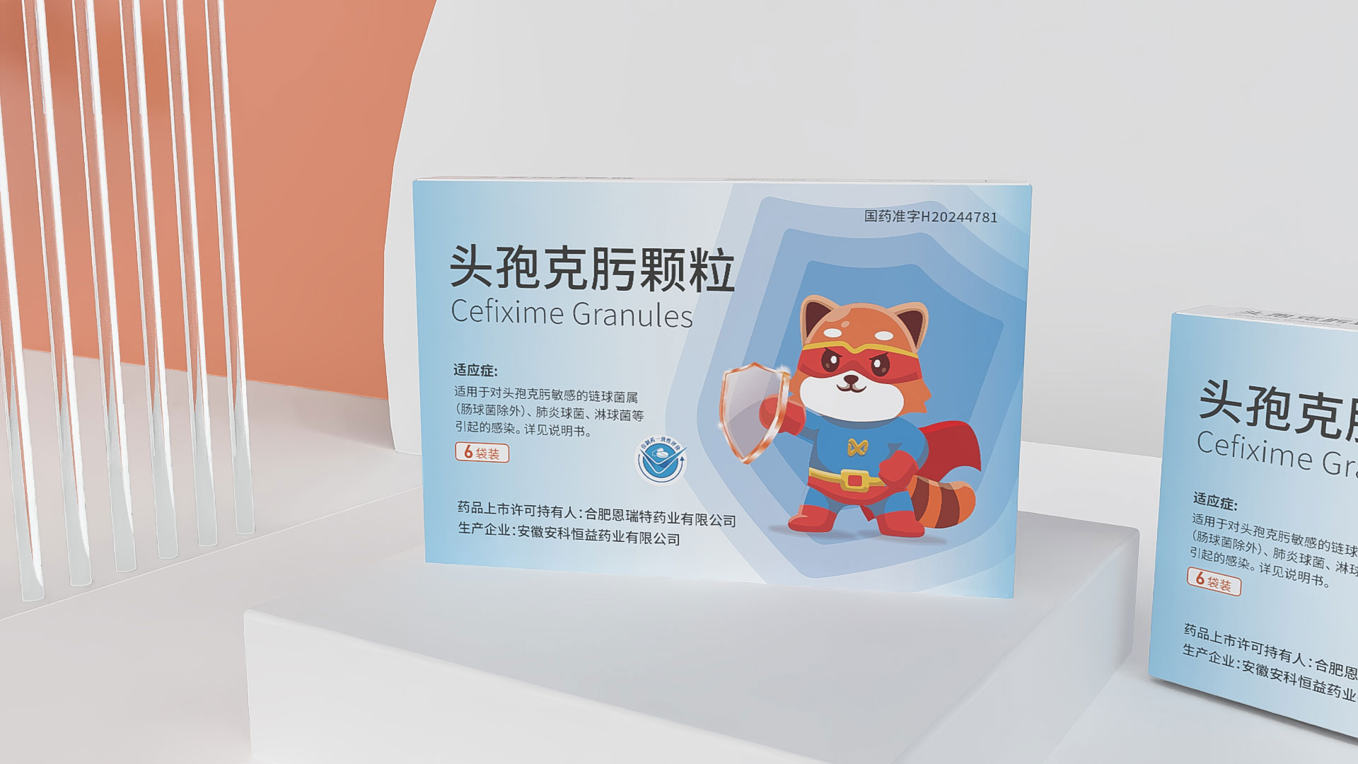 合肥恩瑞特藥業頭孢克肟顆粒兒童用藥包裝設計